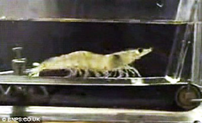 美國科學(xué)家為了試驗(yàn)蝦在尋找食物時可以游多遠(yuǎn),日前拍攝了一段喂養(yǎng)的蝦在跑步機(jī)上“跑步”的視頻,該視頻被上傳到Y(jié)outube上,這只神奇的小蝦現(xiàn)在成了互聯(lián)網(wǎng)上炙手可熱的“大人物”。