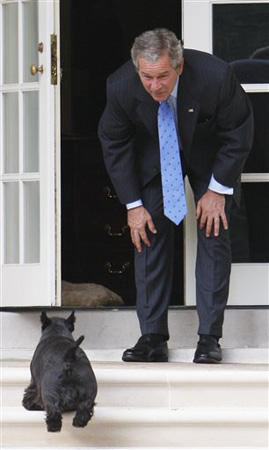 據(jù)英國(guó)媒體11月16日?qǐng)?bào)道,美國(guó)總統(tǒng)布什在白宮養(yǎng)著一條名叫“巴尼”的蘇格蘭犬。這條寵物狗看起來溫馴可愛,但在最近幾周里卻兩次將人咬傷。白宮的官員15日表示,“巴尼”將會(huì)先于整個(gè)“第一家庭”撤離白宮。