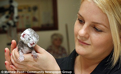 護(hù)士路易莎-博格斯和獸醫(yī)喬治-胡比爾在澳大利亞西部佩斯市接生了小貓。據(jù)悉,母貓在生產(chǎn)期間發(fā)生了感染,雙頭小貓是在獸醫(yī)診所出生的。由于腭裂,這只小貓只能用一張嘴進(jìn)食,但可用兩張嘴同時發(fā)出喵喵的聲音。母貓產(chǎn)下的另外只頭小貓發(fā)育正常,生長狀況良好。