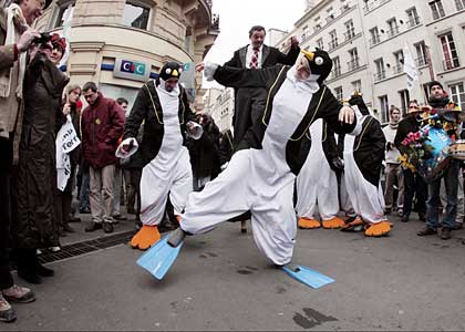 巴黎示威者扮成企鵝抗議氣候變化會(huì)議召開