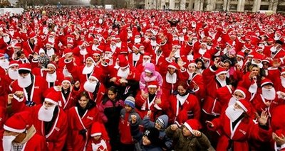 當(dāng)天在羅馬尼亞國會大樓前廣場,有將近4000人穿紅袍、戴白胡須,打扮成圣誕老人,并在羅馬尼亞首都布加勒斯游行,沿路送發(fā)圣誕禮物,這項活動由吉尼斯世界紀(jì)錄認證,創(chuàng)下同一時間,圣誕老人聚集人數(shù)最多的世界紀(jì)錄。