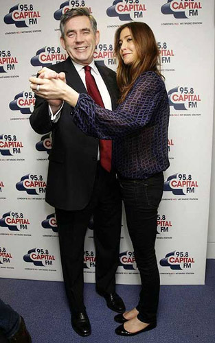 據(jù)英國(guó)媒體披露,11日首相布朗應(yīng)邀參加總部設(shè)在倫敦的“全球廣播電臺(tái)”的開(kāi)業(yè)典禮,擔(dān)當(dāng)剪彩嘉賓。英國(guó)著名女主播麗莎·史諾頓也在受邀之列。剪彩后鑒于主持人的要求,兩人在偌大的舞廳里翩翩起舞。布朗精湛的舞技贏得美女名模兼主播的稱(chēng)贊和掌聲。
