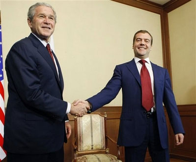 據(jù)香港《文匯報》報道,布什贊揚普京誠實坦白,會說出心中所想。普京下月就會卸任總統(tǒng),由梅德韋杰夫接任。布什與梅氏首次會面后,贊賞對方為人直接,指出梅氏給他的印象非常正面,是個聰明人,很期待與他合作。梅氏表示會跟隨普京的足跡,尋求與美國發(fā)展更深厚的關(guān)系。峰會結(jié)束,布什昨午已啟程返美。