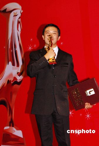 第二十六屆中國電影金雞獎頒獎晚會今晚在蘇州金雞湖畔圓滿落幕,由三十六部影片角逐的十八個(gè)獎項(xiàng)也隨即揭曉。青年演員富大龍憑借在電影《天狗》出色中的表演一舉奪得本屆金雞獎的最佳男演員獎,而“蘇州女兒”劉嘉玲則和青年演員顏丙燕共同摘得最佳女主角獎。中新社發(fā) 邱勇 攝