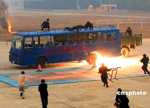中國(guó)武警部隊(duì)特勤大隊(duì)11月12日上午在北京進(jìn)行反恐演習(xí),此次訓(xùn)練科目表演包括搏擊拳、射擊、摔擒、一招制敵、戰(zhàn)術(shù)基礎(chǔ)動(dòng)作、五人戰(zhàn)斗小組情況處置演練等項(xiàng)目。來(lái)自42個(gè)國(guó)家的59名駐華武官,參觀了武警官兵的表演,并參觀了大隊(duì)部分武器裝備。這支組建于2002年12月的部隊(duì)被命名為“雪豹突擊隊(duì)”,組建于二00二年十二月,是美國(guó)“9·11”事件后,中國(guó)為防范和打擊恐怖主義而專(zhuān)門(mén)組建的反恐特種部隊(duì),共四百余人,主要擔(dān)負(fù)處置重大恐怖事件中心區(qū)武力突擊任務(wù)。他們先后四次參加國(guó)家級(jí)反恐綜合演習(xí),并參加了“合作-二00七”中俄聯(lián)合反恐演習(xí),目前已初步具備了反恐制勝的作戰(zhàn)能力。