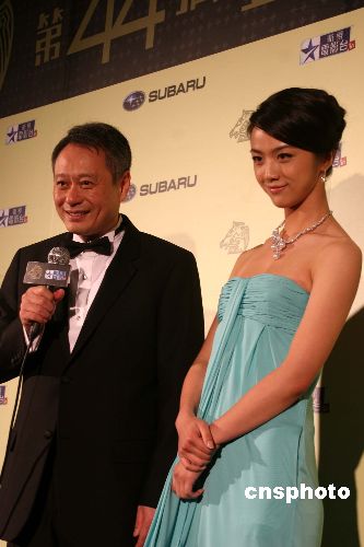 十二月八日晚,第四十四屆金馬獎頒獎典禮在臺北小巨蛋舉行。李安獲得最佳導演獎,右為奪得新人獎的湯唯。中新社發(fā) 董會峰 攝