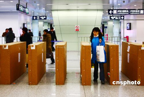 12月17日,在北京地鐵5號線天通苑站出入口處,市民正穿梭于新安裝完畢的一批電子設備中。據(jù)工作人員介紹,地鐵車站安裝的新設備是自動檢售票系統(tǒng),出入口處的是閘機,其相應的配套設備還有自動售票和充值機。目前5號線全線已經陸續(xù)安裝了新的自動檢售票系統(tǒng),但不會立即投入使用,還需要時間調試。屆時,北京地鐵1、2、13號線也將對原有的檢售票系統(tǒng)進行改造,初步預計明年3月以后,所有北京地鐵線路都要開通和使用自動檢售票系統(tǒng)。中新社發(fā) 鄭雄增 攝