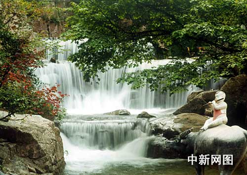 長(zhǎng)壽瀑:宋元豐末年,已近耄耋之年的文彥博致仕歸里省親時(shí)上綿山游覽,正逢南極仙翁云游至此,見(jiàn)綿山山青水秀 、奇巖靈窟、仙氣繚繞,好一方洞天福地。遂按下云頭,化為一老者游覽至水濤溝時(shí)恰遇文彥博在此。仙翁知其為當(dāng)朝元老便搭話(huà):“老翁久仰太師大名今日得見(jiàn),乃三生有幸。愿贈(zèng)靈芝一枚,食之可長(zhǎng)壽也!睆┎┲x曰:“吾與老翁素昧平生,豈敢受贈(zèng)!崩衔淘唬骸肮藝(guó)之棟梁,公長(zhǎng)壽,民之福也。”言畢化清云南向而去。彥博方知是南極仙翁,納頭便拜。次年文彥博復(fù)職,后歲九十二卒。后人為紀(jì)念這一奇遇,在此 塑壽星和靈芝以志之。