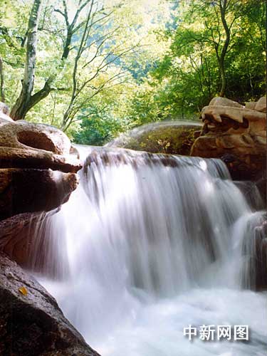 又往前走一點(diǎn),是一道天然的小瀑布,那朵朵撞擊在石塊上飛濺出的銀白的水花,如霧如煙,雖沒(méi)有“飛流直下三千尺”的磅礴氣勢(shì),卻給人一種柔和、幽雅的感覺。瀑布在歡唱,表露著它那按不住的歡樂(lè)。