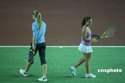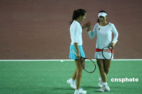 一月二日,伊萬諾維奇/彭帥在香港網(wǎng)球精英賽雙打比賽中以二比八負(fù)于德門蒂耶娃/拉切德組合。當(dāng)晚﹐香港網(wǎng)球精英賽在維多利亞公園網(wǎng)球場揭幕。中新社發(fā) 武仲林 攝