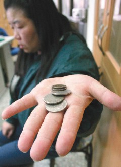 據(jù)臺灣《聯(lián)合報》報道,四十三歲的陳女昨天在警局翻遍全身口袋,僅有三十二元!斑@是我全部的積蓄,要留給媽媽下一餐。”說完,陳女淚水立刻滑下。警察見狀不忍,掏腰包買面包請她吃,她抹淚紅著眼狼吞虎咽,似乎餓壞了。
