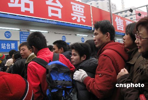 2008年1月19日周六,離春節(jié)還有十余天,大批在京就讀的大學(xué)生、打工者,在春運高峰到來前先期買列車票、站臺票回家鄉(xiāng)過春節(jié)。中新社發(fā) 鄒憲 攝