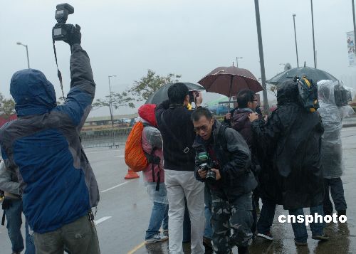 眾多新聞媒體的記者冒雨在澳門終審法院門口采訪。