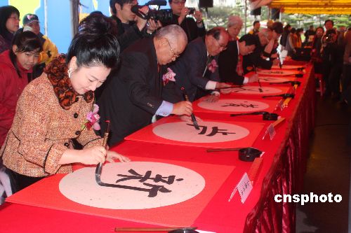 圖:臺(tái)灣舉辦新年開(kāi)筆大會(huì) 三千人參加書(shū)法揮毫