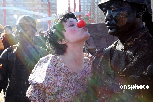 圖為中國藝術(shù)家展示的人體雕塑吸引外國藝術(shù)家。