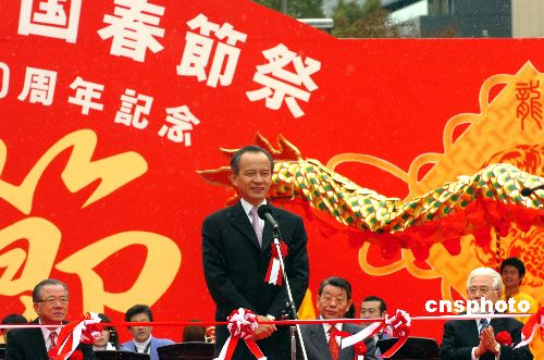 2月9日,第二屆名古屋中國(guó)春節(jié)祭在日本名古屋市的久屋大通公園隆重開幕,中國(guó)駐名古屋總領(lǐng)事李天然在開幕式上表示,“名古屋中國(guó)春節(jié)祭”是中國(guó)傳統(tǒng)的“春節(jié)文化”和日本民族喜聞樂見的“祭”的形式相結(jié)合的產(chǎn)物,相信這種融中華民族的飲食文化、演藝文化和民俗文化于一爐的活動(dòng)形式一定能夠讓日本民眾和在日華人華僑共度一個(gè)真正的“中國(guó)年”。中新社發(fā) 滕劍峰 攝