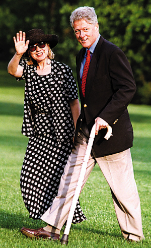 1997年,希拉里與克林頓出席一個公開場合,將圖案情意結(jié)發(fā)揮得淋漓盡致,黑底白波點連外套長裙將她幻化成一張“人肉包裝紙”,她硬撐著說:“那套衣服不是這么糟,只是較為令人眼花而已。”