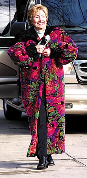 2000年,希拉里參選紐約州參議員,竟以一件大紅大綠又大紫的臃腫長褸亮相。她自嘲說:“我是循環(huán)再用理念的忠實信徒,連地毯也會翻用!