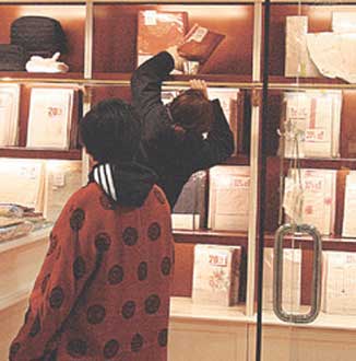 年二十九下午3時,束著馬尾,帶著黑框眼鏡,打扮樸素的鄭秀文與助手大嬸,在中環(huán)太子大廈內一間售賣床上用品的店鋪揀選寢具,可能店內貨品大多顏色鮮艷,所以看得Sammi心花怒放,不時拉著店員東指指西指指,恨不得將所有艷紅寢具統(tǒng)統(tǒng)捧回家一樣。其后,Sammi對其中一品牌的粉紅大花花床單套裝愛不釋手,未待店員將包裝袋拆開便立即將內里的枕頭套取出來細看。