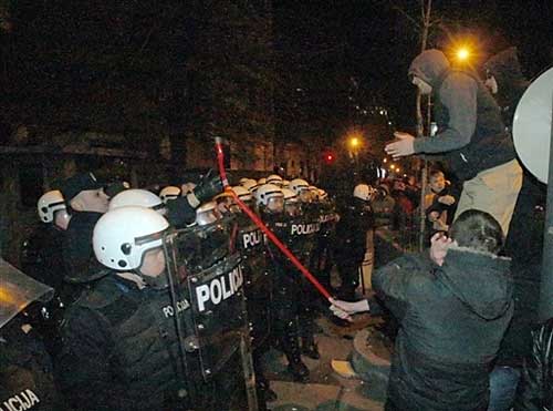 反科索沃獨立示威變成騷亂 塞族青年攻擊美歐使館
