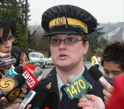 本拿比皇家騎警發(fā)言人就一名記者被捕事件接受采訪,該記者懷疑冒充親友而被警方帶走,并遭沒收攝影器材。