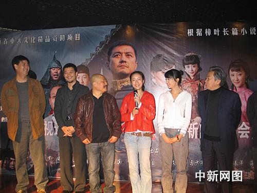 三月十四日,由西部電影集團(tuán)投資的電視連續(xù)劇《關(guān)中風(fēng)云》在西安舉行新聞發(fā)布會(huì)。圖為劇中的男一號(hào)李亞鵬以及導(dǎo)演丁黑等來(lái)到現(xiàn)場(chǎng),氣氛熱烈。作 者:冽瑋