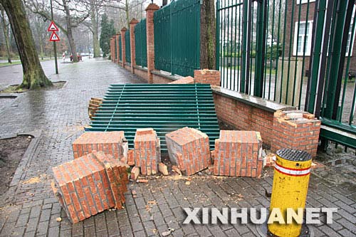 3月16日,“藏獨(dú)”分子暴力損毀中國駐荷蘭大使館圍墻欄桿和立柱。