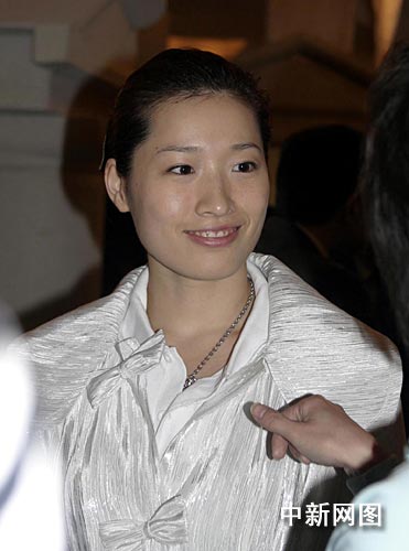 北京奧運(yùn)會(huì)火炬希臘傳遞的第一位中國(guó)火炬手羅雪娟3月23日晚身著白色禮服出席晚宴。中新社記者 王歡