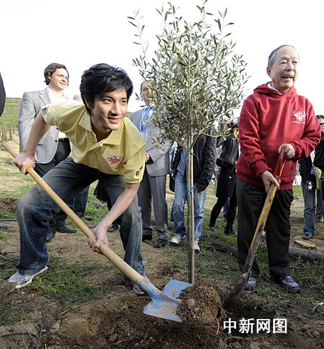 劉鴻亮王力宏等北京奧運(yùn)會(huì)可口可樂(lè)火炬手在位于古奧林匹亞的顧拜旦紀(jì)念碑旁栽下一棵橄欖樹(shù),向綠色奧運(yùn)及環(huán)保事業(yè)致敬,并以此號(hào)召人們共同努力修復(fù)剛被大火肆虐的古奧林匹亞遺址。