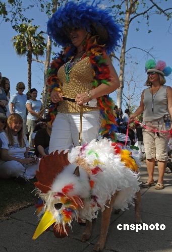 三月二十三日是西方復(fù)活節(jié),洛杉磯長(zhǎng)灘舉行一年一度的“復(fù)活節(jié)愛犬時(shí)裝秀”,數(shù)百只寵物狗身著艷麗時(shí)裝參加時(shí)裝走秀。有的花枝招展,有的古靈精怪,有的雍容華貴,有的滑稽搞笑。中新社發(fā) 張煒 攝