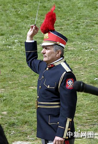 希臘當(dāng)?shù)貢r間3月24日,北京二00八年奧運會圣火采集儀式在古奧林匹亞競技場舉行。圖為儀式現(xiàn)場的樂隊指揮。 中新社記者 王歡