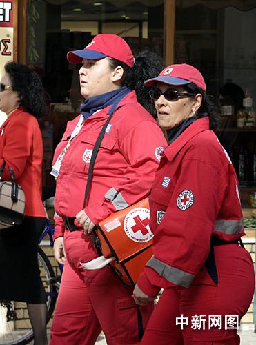 希臘當(dāng)?shù)貢r間3月24日,北京二00八年奧運會圣火采集儀式在古奧林匹亞競技場舉行。儀式開始前,身著醒目紅色工作服的救護人員準(zhǔn)備入場。 中新社記者 王歡