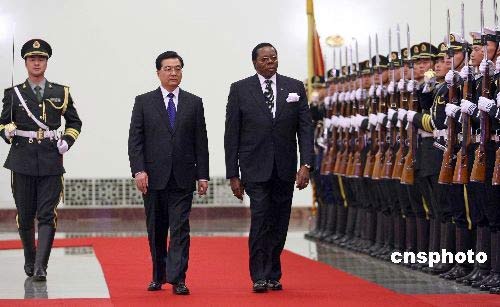 中國(guó)國(guó)家主席胡錦濤在北京人民大會(huì)堂舉行儀式,歡迎來(lái)訪的馬拉維共和國(guó)總統(tǒng)賓古·瓦·穆塔里卡。中新社發(fā) 盛佳鵬 攝