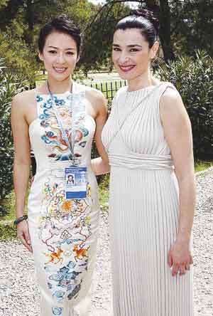 當(dāng)天,章子怡身穿富有中國(guó)特色的露背中式旗袍,于上午10點(diǎn)半進(jìn)入奧林匹亞古競(jìng)技場(chǎng)。那件刺繡旗袍上,有龍,有白云,有鶴,有很多中國(guó)的非常吉祥的象征,由著名設(shè)計(jì)師專門(mén)設(shè)計(jì),十分艷麗搶眼,甫一亮相,就得到了在場(chǎng)全體中國(guó)人的掌聲和歡呼。當(dāng)天陽(yáng)光很好,她的心情也不錯(cuò),但她此行的身份卻是著名網(wǎng)站搜狐的特約記者,在現(xiàn)場(chǎng)她也當(dāng)了把追星族。隨著前國(guó)際奧委會(huì)主席薩馬蘭奇入場(chǎng)后,章子怡拿起相機(jī)對(duì)準(zhǔn)薩翁,而后兩人愉快合影。章子怡落座貴賓席5排左邊第4位。在儀式過(guò)程中,她面帶微笑,不時(shí)站起身用相機(jī)記錄。
