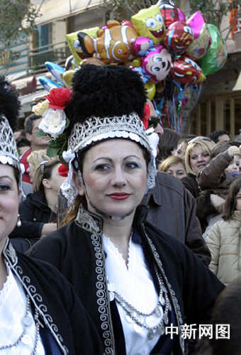 3月26日,北京奧運(yùn)會(huì)圣火希臘境內(nèi)傳遞第三日,抵達(dá)當(dāng)天最后一個(gè)城市韋里亞。當(dāng)?shù)厥忻袷⒀b參加慶典儀式。中新社記者 王歡
