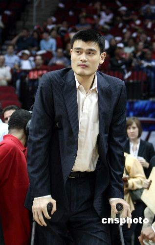 圖:姚明拄拐助威 火箭隊(duì)大勝森林狼