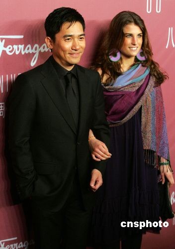 3月28日晚,香港影星梁朝偉、莫文蔚在上海參加Ferragamo80周年慶典,并出席Ferragamo2008秋冬男女時裝發(fā)布會。中新社發(fā) 湯彥俊 攝