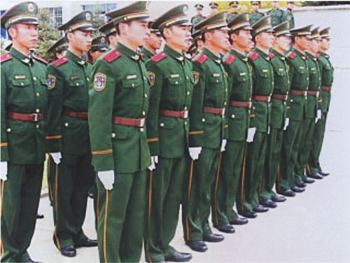 一、著裝的年代不符。武警部隊(duì)自2005年1月1日起,全體官兵統(tǒng)一佩戴胸標(biāo)和臂章,而照片上武警士兵的著裝既無(wú)胸標(biāo),也無(wú)臂章,該照片顯然是2005年1月1日之前所拍。自2006年5月1日始,武警部隊(duì)?wèi)?zhàn)士統(tǒng)一換著05式服裝,其服裝材質(zhì)由布料改為仿毛面料,挺括舒展,而照片上顯示武警戰(zhàn)士穿著的是87式布料服裝。顯然,照片上反映的服裝與部隊(duì)現(xiàn)行著裝不是一個(gè)年代。