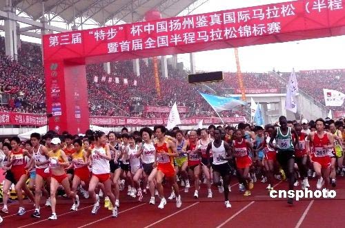 4月6日,第三屆鑒真國際馬拉松半程賽暨全國首屆半程馬拉松錦標(biāo)賽在揚(yáng)州拉開戰(zhàn)幕。來自二十多個國家和地區(qū)的一萬多名馬拉松運(yùn)動員和長跑愛好者參與了此次盛會。這是中國唯一以人名命名的馬拉松賽事,以曾經(jīng)東渡日本的唐朝大和尚鑒真。經(jīng)過激烈的角逐,中國選手包攬了男女半程馬拉松的冠軍,本次馬拉松比賽男女前三名成績均破賽會紀(jì)錄。