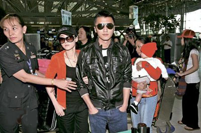 在曼谷期間,霆鋒除了拍戲便陪妻兒,更一家三口拜四面佛。他們的行蹤低調,連日來傳媒也未能“埋身”采訪。昨日霆鋒一家三口高調返港,他們在4時許抵機場,現(xiàn)場有警員護駕。