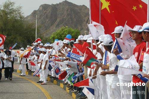 4月14日下午5時,阿曼華人華僑迎接北京奧運(yùn)圣火。沈晨 攝