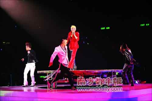 當(dāng)晚,劉美君多年好友草蜢也為她登臺助興。草蜢三人的演唱會每次都因場面火辣,有性愛暗示而備受爭議。但前晚,3子雖然唱了兩首歌,但有劉美君的撩人在先,3人完全被比下去。