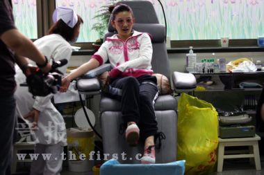 等候獻血的時候,黃奕說:“希望災(zāi)區(qū)的人民能順利渡過難關(guān),政府也在極力給予幫助,所以一定要堅持下去。”黃奕笑著表達了自己的心愿:“一切都會好起來的,奧運會也一定能順利舉辦!背檠灥臅r候,黃奕一臉輕松,“沒事,就像被蚊子咬了一下!闭麄獻血的過程,看不出黃奕有絲毫的緊張,甚至和周圍獻血的人們聊了起來。此外,她還“勒令”身邊的同事:“你也去獻,快點快點!鲍I血完畢,黃奕輕松地走出來,身后還有被她要求獻血的同事,說:“我也獻完了!