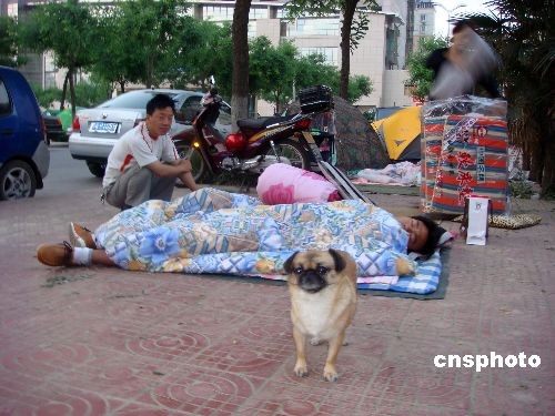 5月19日晚,陜西省應急辦、省地震局通過當?shù)匦侣劽襟w發(fā)布安民告示:根據中國地震局專家會商意見,19—20日汶川震區(qū)發(fā)生較強余震的可能性較大,陜西省可能會有較強震感,特別是漢中、寶雞等地,請做好防范準備。 接到告示后,寶雞市民采取積極措施,冷靜應對。千余名市民帶著帳篷、被褥,扶老攜幼,來到位于寶雞市金臺大道的市民廣場度夜,以防余震帶來的不測。5月19日晚18點至5月20日早8點,寶雞市區(qū)沒有發(fā)生明顯震感。 中新社發(fā) 倪樹斌 攝