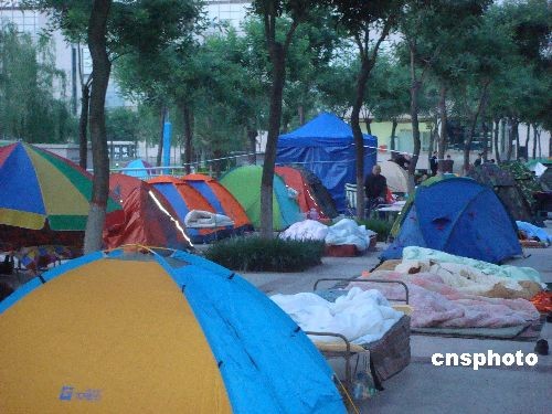 組圖:陜西寶雞市民廣場(chǎng)度夜以防余震(2)