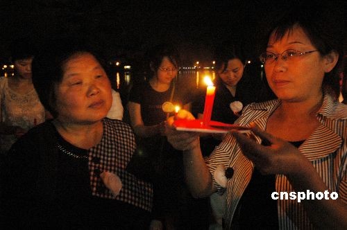 組圖:南陽(yáng)市民放河燈為汶川地震災(zāi)民祈福(2)