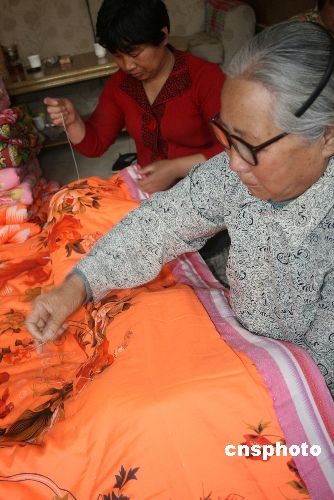 5月19日,在山東博興縣城東街道辦事處顧家村,幾名農(nóng)家婦女正在趕制新被,她們打算將縫制好的被褥,通過當(dāng)?shù)赜嘘P(guān)慈善部門捐往地震災(zāi)區(qū)。 四川省汶川縣5月12日發(fā)生8.0級地震后,災(zāi)情時刻牽動著當(dāng)?shù)剞r(nóng)民的心,他們通過看電視、聽廣播等各種方式高度關(guān)注抗震救災(zāi)進(jìn)展情況,他們踴躍向?yàn)?zāi)區(qū)捐錢、捐物,當(dāng)他們了解到災(zāi)區(qū)缺乏被褥等生活用品時,自己出錢購買回了布料、棉花絨等,趕制被褥,希望能以最快的速度送往災(zāi)區(qū),幫助災(zāi)區(qū)人民群眾早日度過難關(guān),恢復(fù)正常生活。