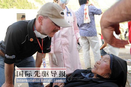 本報記者楊磊在北川縣城外的山路上見到孫柏安時,他看上去正處于一籌莫展中。一名受傷的老人急需治療,但面對孫柏安和同伴要幫忙的表態(tài)卻連連擺手!爸袊哪莻老太太大概很少見到外國人,所以不愿意讓他診斷。”一番交談之后,老太太才上了醫(yī)療車。