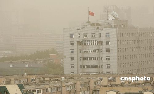 5月20日下午,北京出現(xiàn)沙塵天氣,黃色的浮塵籠罩全市。