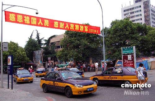 5月26日,四川地震災(zāi)區(qū)綿陽(yáng)街頭打出“感恩祖國(guó)人民,感謝人民解放軍”的橫幅。四川汶川8級(jí)大地震發(fā)生后,中國(guó)各地發(fā)揚(yáng)“一方有難 八方支援”的精神,以捐款捐物、救治傷員、對(duì)口支援等形式全力支持災(zāi)區(qū)抗震救災(zāi),約有10萬(wàn)余名軍隊(duì)人員參與到此次救援抗災(zāi)中。中新社發(fā) 劉萬(wàn)強(qiáng) 攝
